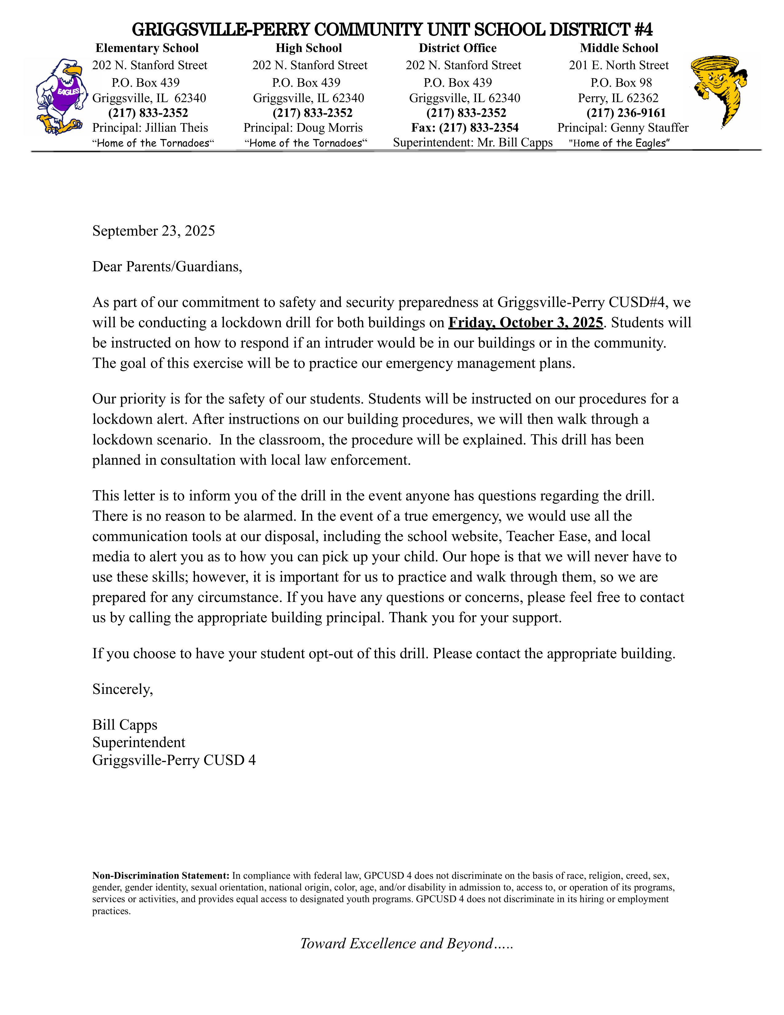 Griggsville-Perry CUSD 4202 North StanfordGriggsville, IL 62340